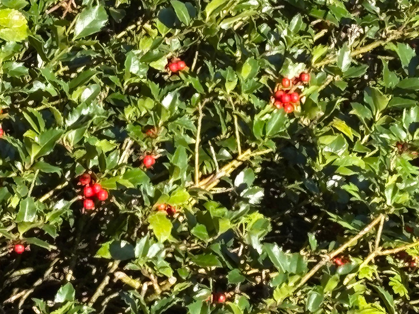 Red berries on a holly bush perfecting their shapes for the holiday season ahead.