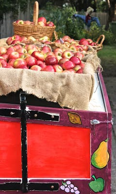 A truck filled to the brim with apples sputtering by. (I daydream about hopping on one and eating all the apples while the driver listens to John Denver, and when we arrive, he finds me fat and full sitting in the truck with apple cores surrounding me.)