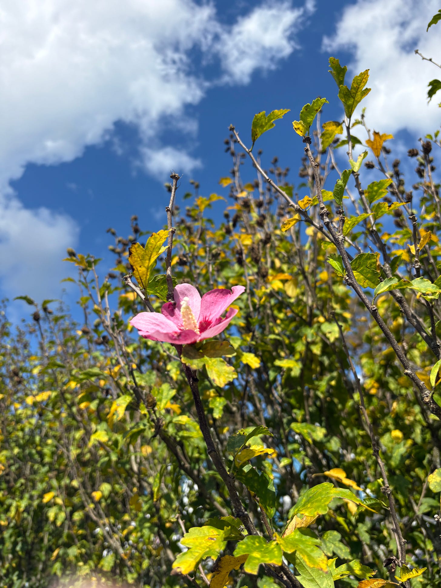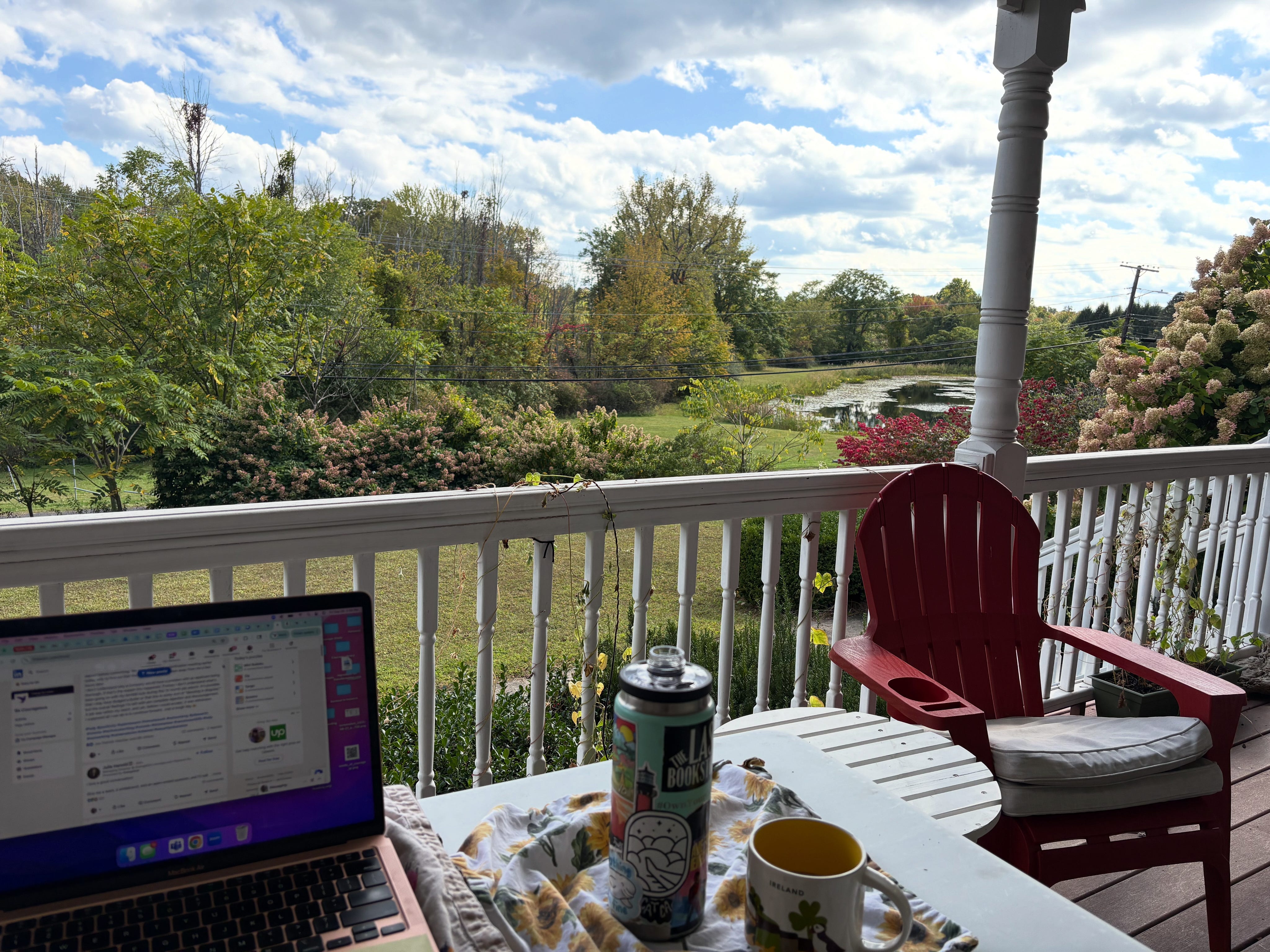 One of my most important rituals, which aligns with The Artist’s Way, is to move my desk outside for September and, as long as possible, October. Here, facing my front yard, before I begin my writing for the day, I notice: